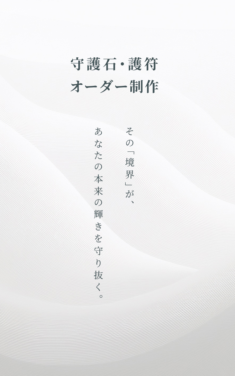 選定された天然石は、そのままではまだ自然界の物質に過ぎません。 浄化を経て、あなたの願いや目的、そして私自身の「念」を深く封じ込めることで、石は初めてあなただけの「守護(結界)」へと変容します。一過性の幸運ではなく、あなたの人生という土台を整え、品位ある歩みを支えるための「逸品」として仕上げます。